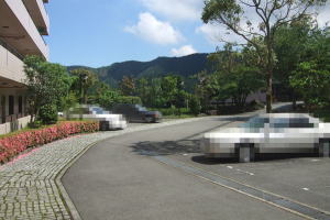 駐車場料金不要(台数制限)で利用できます。マンションの前に分譲地運営のJR宇佐美駅への無料送迎送迎バスの停留所もあます。