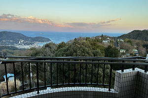 | ※海と初島と伊豆の山並み、宇佐美の街を一望するお部屋です。ペット飼育可。バス便運行。 |