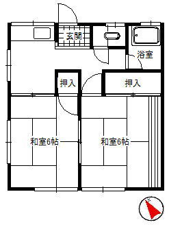 ◆2K(約4帖DK・6帖和室・6帖和室・浴室・和式トイレ)