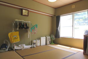 角部屋ですので、ダイニングの西側にも腰高窓があり、明るい室内となっています。使用損耗や経年変化は見受けられ、分譲当時ののままをご使用(トイレ便座は交換)されています。気になるかどうかになりますが、リフォームは行いたい感じと見受けました。コンパクトなお部屋ですが、角部屋で、専用庭もあり、戸別温泉も引込みが可能で、ちょっと魅力的なセカンドライフをお楽しみいただけそうです。