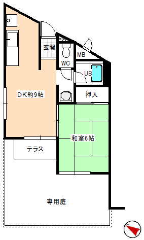フジタ宇佐美マンションB棟/専用庭付き、南西向き