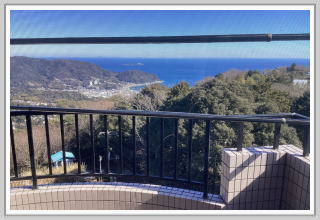 | ※海と初島と伊豆の山並み、宇佐美の街を一望するお部屋です。ペット飼育可。バス便運行。 |