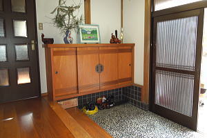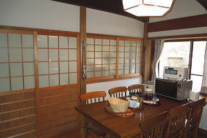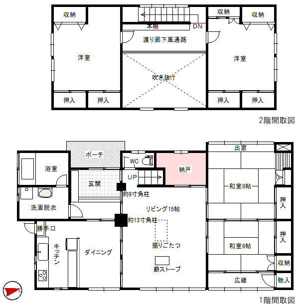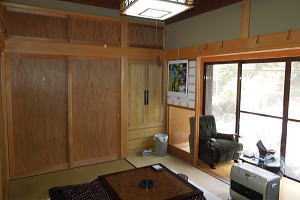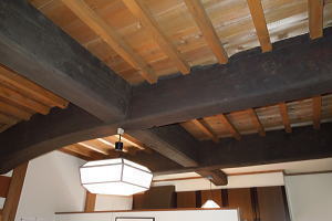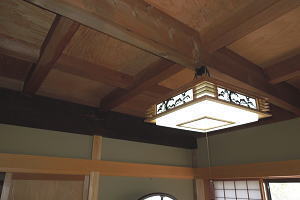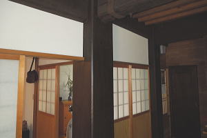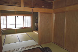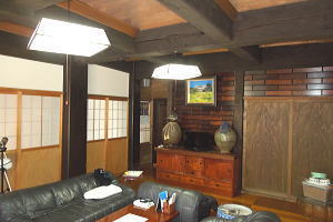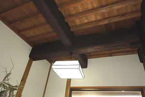 居間・約13寸の角柱と奥に約9寸の角柱 |