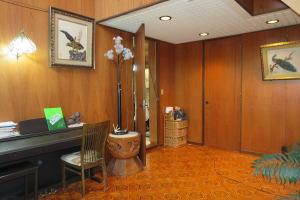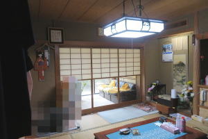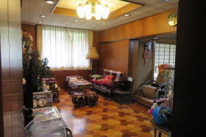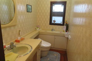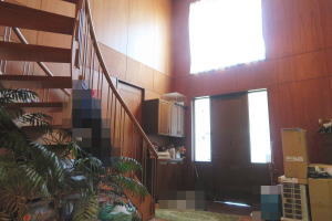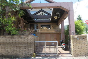 堂々とした構えで玄関のスタイルも魅力的な大型住宅です。間取は6LDK+Sで、玄関口も2箇所ありますので、2世帯などご家族が多いご家庭にも適しています。メインの玄関では広々としたホールが出迎えます。無垢板の壁や螺旋状の階段が設けられ、重厚さを伺わせてくれます。1階にはLDKや洋間や和室、廊下を隔てて3部屋の洋室があり、ひと部屋にはミニキッチンが備えてありました。2階は廊下も広く、広い洋室と広縁付きの和室、また収納力たっぷりの數納室が設けられています。家屋の状態的には経年変化や使用損耗紙受けます。バルコニーがある方向が概ね南に当たり陽当りも良好です。2階から海が少し眺められます。