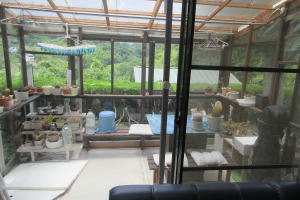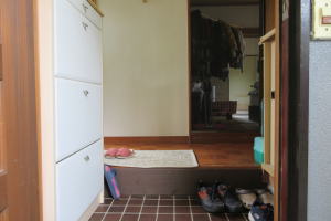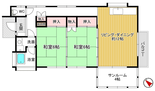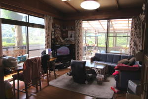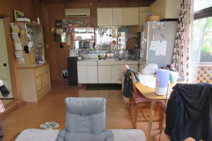 南側と西側の道路(幅4m・位置指定道路)に面した陽当りの良い平家建です。南側道路(駐車場側)からは高台になっており、外階段で15段ほど上がって玄関です。平成29年に行政の耐震診断を行われ、耐震補強工事を施工されています。コンパクトな間取りの2LDKで、リビングや居室は続き間のつくりです。定住されていますため使用損耗なども見受け、水回りは幾分古めかしさがありますが、現状のままでも利用できる状態です。所有者様が造作されたサンルームがリビング掃き出し窓からつながっています。