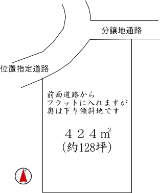 北西側幅約5.5m位置指定道路(北側の分譲地通路にも面し角地状況) |
