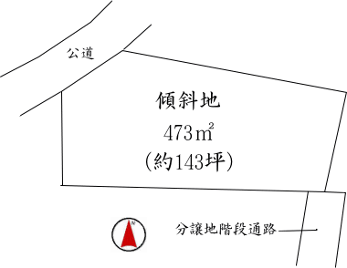 北西側道路から上り傾斜地 |